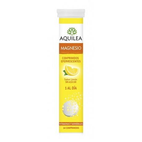 Aquilea Magnesio 14 Comprimidos Efervescentes es un complemento alimenticio a base de magnesio, un mineral esencial para el buen funcionamiento del organismo, que interviene en diversas áreas, en especial en el sistema muscular y energético. Aquilea Magnesio aporta en un solo comprimido el 100% de la cantidad diaria recomendada de magnesio para ayudar a estar en plena forma, ya que contribuye al funcionamiento de huesos y músculos así como ayuda a disminuir el cansancio y la fatiga.