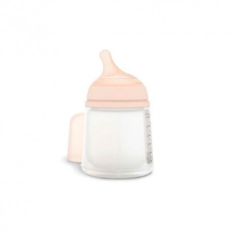 Suavinex Biberon Anticolico Lactancia Mixta +0m 180ml está fabricado con una tetina de silicona superfina de color piel, imitando en textura y consistencia al pezón, y además está ladeada e inclinada para imitar la posición de cuando das el pecho. Esta forma de la tetina evita la ingesta de aire, ayuda a evitar el reflujo e incluso infecciones de oído.