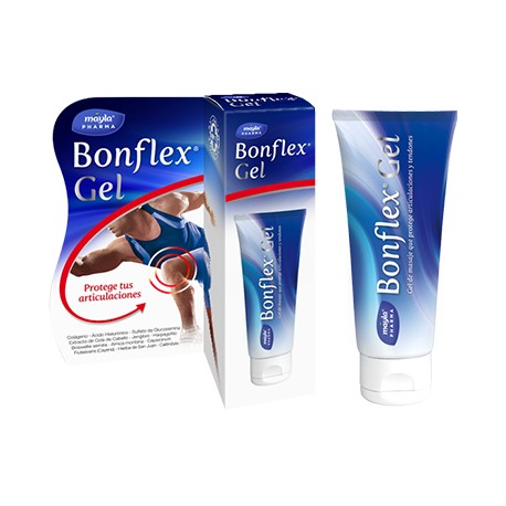 Bonflex Gel 100 ml protege y recupera las articulaciones y los musculos, este producto tiene propiedades antiinflamatorias y además permite reducir las molestias ocasionadas por un esfuerzo físico fuera de lo normal o un entrenamiento. En su formulación se puede encontrar Harpagofito y Calédula, estos ingredientes producen un efecto sedante y calmante, mientras que la Cola de Caballo favorece la cicatrización de los tejidos. Por otro lado, contiene colágeno para una óptima función estructural y previene el envejecimiento prematuro. Así mismo, el Ácido Hialurónico, regenera de una forma rápida los tejidos y actúa como analgésico. Finalmente la Vitamina C, protege de la degeneración de las articulaciones.