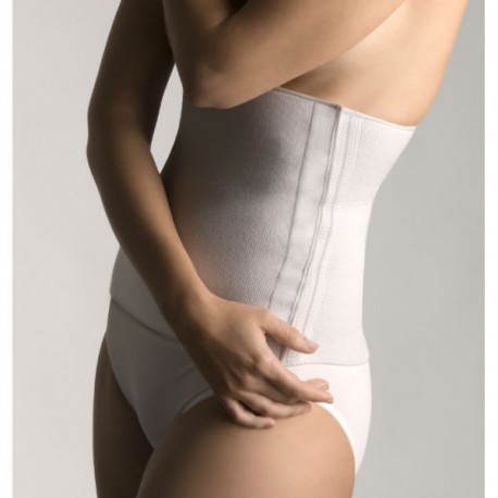 Faja de tejido elástico de algodón , transpirable, con banda de velcro para elegir la compresión de la faja y permitir una fácil colocación.