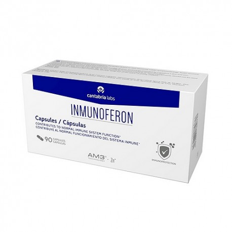 Inmunoferon Cápsulas es un complemento alimenticio que activa y refuerza las defensas de tu organismo. Formulado con AM3, glucomanano y proteína de soja, y zinc, contribuye al normal funcionamiento del sistema inmune. Por ello, Inmunoferon Cápsulas, que se presenta en un blíster con 90 comprimidos, está indicado para aquellas situaciones en las que se requiere reforzar las defensas. Inmunoferon también está disponible en sobres, para aquellas personas que les resulte más sencilla la ingesta de este formato.