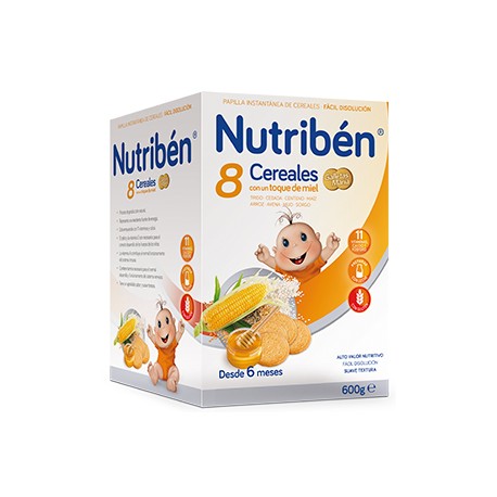 Nutriben 8 Cereales y Miel Galleta Maria es una papilla indicada para la alimentación de bebés a partir de los 6 meses.